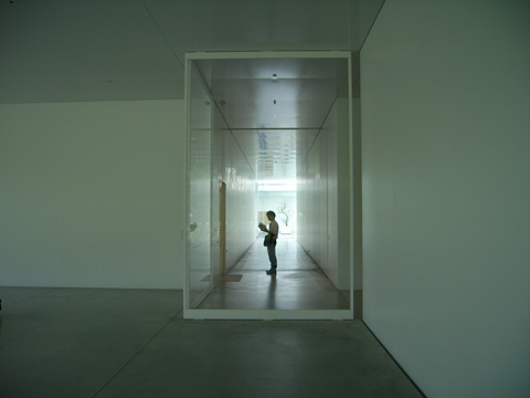 展示室ボリュームにも、視線が抜ける位置に開口が設けられていて、内部の展示も垣間見える.