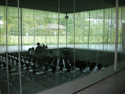 掘り込まれた集会場は二重のガラス張り