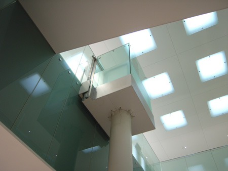 無料ゾーンから有料ゾーンが見通せるガラスの間仕切りは、隙間があって透明なだけでない開放感.