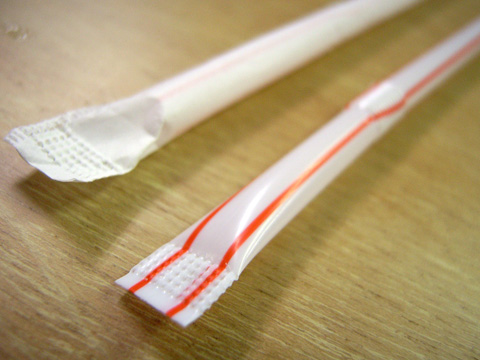 紙の包装の封をするときに、ストローの端を一緒に圧着しちゃったんだね.